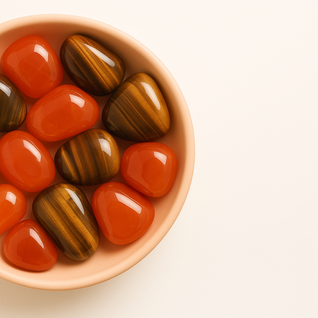 CARNELIAN - Abuse has a tendency to take root in the second chakra, which is where your strength comes from. Carnelian is the ideal stone to revive this energy, as its warm orange hue reawakens your mental and physical energy. It can help put an end to bothersome inflammation and pacify overactive states. Additionally, Carnelian promotes making right decisions and encourages being totally in the now.